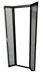 機能性・デザイン性を損なわない高品位な観音式ドアー。狭小スペースにセキュリティ上、ドアー設定が必要なラックに最適です。