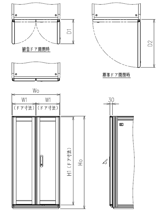 - 観音ドアにすることで開閉スペースを縮小することが可能。
